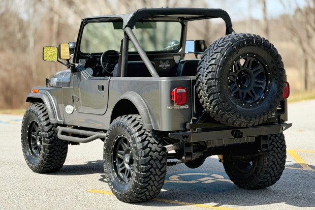 This 1984 Jeep CJ-7 has an accident-free Carfax report that lists history in Florida, Arizona, and North Carolina dating back to 1992. Powered by a 258ci inline-six paired with a five-speed manual, the truck is refinished in metallic gray with a bikini top over a black interior, and it has power steering, metal half-doors, and Bestop seats. Its build also features 35″ tires, Pro Comp 18″ wheels, rock sliders, Warn bumpers, AutoMeter Phantom gauges, and a Flowmaster muffler. This wide-track CJ-7 is offered at no reserve by the selling dealer in Massachusetts with a clean North Caro …