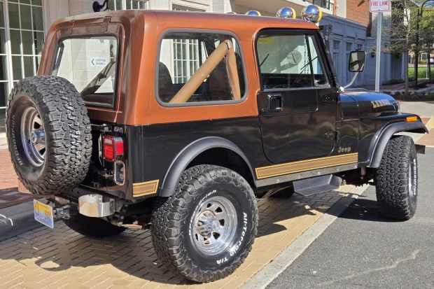 This 1984 Jeep CJ-7 was acquired by the seller in 2015 and underwent a refurbishment that was completed the following year. Work included overhauling the 258ci inline-six and five-speed manual transmission as well as retrofitting a later-model tub, repainting the body in black, and reupholstering the interior in brown vinyl. It rides on a lifted suspension with Skyjacker shocks in addition to polished 15″ steel wheels mounted with 33″ BFGoodrich tires, and the truck is further equipped with a dual-range transfer case, manually locking front hubs, front disc brakes, a removable hardtop, KC off-road lig …