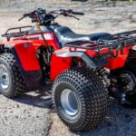 The ATV was fitted with replacement red plastic bodywork, decals, and mounting hardware under prior ownership, an …