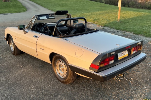 This 1986 Alfa Romeo Spider Graduate spent time in Missouri and Illinois before it was sold on BaT in April 2023, relocated to Florida, and acquired by the selling dealer in January 2026. Showing 43k miles, the car is finished in white over black vinyl upholstery and is powered by a 2.0-liter inline-four paired with a five-speed manual transmission. Additional equipment includes a replacement black top, a top boot, a roll bar, 14″ steel wheels, a limited-slip differential, air conditioning, and a Sony CD stereo. Service since 2020 has included rebuilding the speedometer, changing the oil, and replacing the camshafts, engine and transmission mounts, fueling and braking components, and more. This …