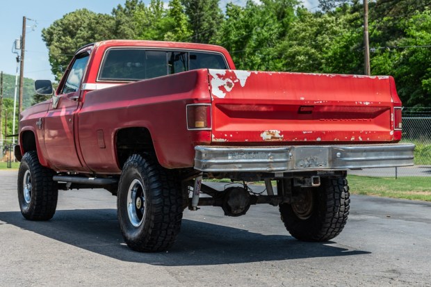 This 1987 Chevrolet V10 is a long-bed Silverado 4×4 that is powered by a 5.7-liter V8, which is paired with a five-speed manual swap. Finished in Apple Red over a Burgundy interior, the truck has been registered in Arkansas since new, and it features a 6″ lift, 35″ tires, 15″ Rally wheels, power brakes, dual fuel tanks, manually locking front hubs, glasspack mufflers, power windows, power steering, and air conditioning. This squarebody Silverado 4×4 is offered by the selling dealer at no reserve with an accident-free Carfax report and a clean Arkansas title.
