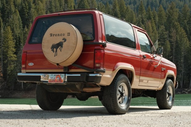 This 1987 Ford Bronco II Eddie Bauer was purchased new by the seller’s grandmother-in-law, who drove the truck until reaching her early nineties, and it was acquired by the seller in 2024. Finished in red and beige over beige cloth, the truck is powered by a 2.9-liter V6 linked with a four-speed automatic transmission and a dual-range transfer case. It also has a swing-away spare tire carrier, a flip-open liftgate window, front disc brakes, Mile Marker Industries manually locking front hubs, 15″ cast aluminum wheels, a heater, power windows and door locks, and a cassette stere …