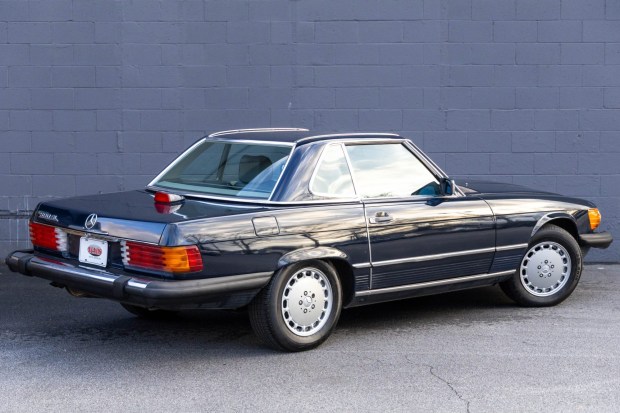 This 1987 Mercedes-Benz 560SL remained under the care of two previous owners until 2025, and it is finished in Midnight Blue over gray leather upholstery. Powered by a 5.5-liter V8 paired with a four-speed automatic transmission, the car features a limited-slip differential, a black soft top, a removable hardtop, silver-finished 15″ Gullideckel alloy wheels, fog lights, a Pioneer stereo, electric windows, central locking, cruise control, and automatic climate control. Work completed since 2021 has included replacing a motor mount, the spark plugs and wires, distributor cap, fuel rail seals, fuel filter, alternator, and the air conditioning compress …