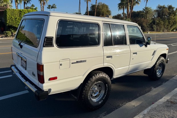 This 1989 Toyota Land Cruiser FJ62 was acquired in 2014 by its current owner, who commissioned a repaint in white in 2021. Additional work since that time included installing Old Man Emu shock absorbers, rebuilding the steering gearbox, resealing the two-speed transfer case, and replacing the transmission pan gasket, tires, and various brake components. The truck is powered by a 4.0-liter inline-six paired with a four-speed automatic transmission, and it rides on 15″ chrome wheels. Additional equipment includes manually locking front hubs, front disc brakes, chrome bumpers, front bucket seats trimmed in patterned gray cl …