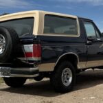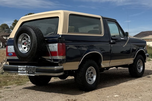 This 1990 Ford Bronco Eddie Bauer is finished in Deep Shadow Blue Metallic over Chestnut cloth. The truck has been registered in Arizona for at least 24 years, and it is powered by a 5.8-liter V8 paired with a four-speed automatic. It has 15″ wheels, 31″ tires, manually locking front hubs, front captain’s chairs, power windows and locks, and a cassette stereo. The vehicle was acquired by the seller in 2024. This Bronco is offered at no reserve with a clean Arizona title in the seller’s name.