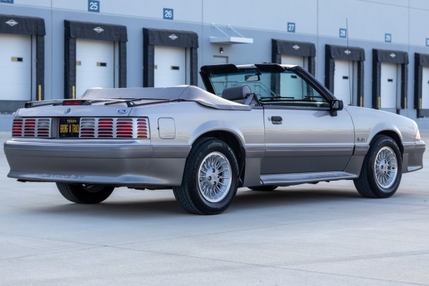 This 1990 Ford Mustang GT convertible was initially delivered to Mid-Cape Motors of Hyannis, Massachusetts, and now shows 24k miles. The car is powered by a 302ci V8 linked with a four-speed automatic transmission and a Traction-Lok rear axle, and it is finished in Light Titanium Clearcoat Metallic over Titanium cloth. Equipment includes the Power Equipment Group, a replacement black convertible soft top, fog lights, 15″ alloy wheels, front sport seats, air conditioning, cruise control, and a cassette stereo. This Fox-body Mustang GT was purchased by the current owner in 2024 and is now offered on consignment by the selling de …