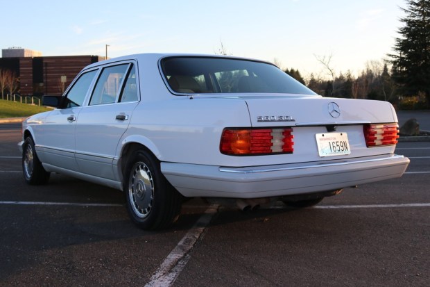 This 1990 Mercedes-Benz 560SEL has remained registered in Washington and Oregon since new, and it was purchased by the seller on BaT in May 2025. Subsequent work is said to have included changing the oil, fitting Euro-spec headlights, and replacing the timing chain, battery, and ignition, fueling, and braking components along with the tires, radiator hoses, accessory belts, and more as detailed below. Finished in Arctic White over Palomino leather upholstery, the car is powered by a 5.5-liter M117 V8 paired with a four-speed automatic transmission. Equipment includes a limited-slip differential, self-leveling hydraulic rear suspension, 15″ Gullideckel alloy wheels, heated power-adjustable front and rear …