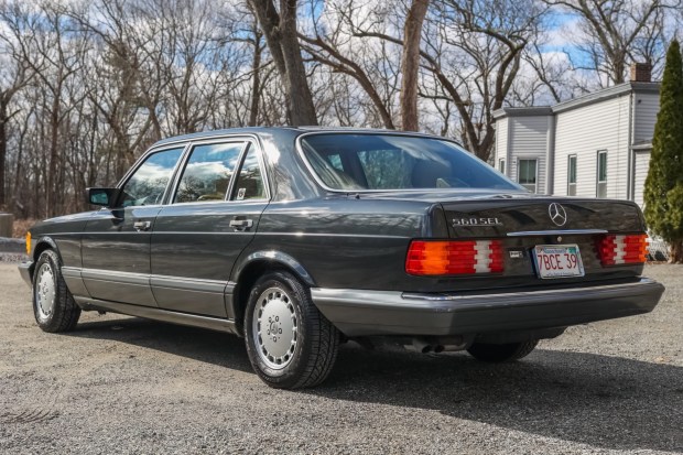 This 1990 Mercedes-Benz 560SEL was initially delivered to Pepe Motor Corp in White Plains, New York, and was purchased in 2025 by the seller, who subsequently replaced the tires, brake components, electro-hydraulic actuator, valve cover gaskets, and battery. Showing 53k miles, the car is powered by a 5.5-liter M117 V8 paired with a four-speed automatic transmission and a limited-slip differential and is finished in Black Pearl Metallic over Palomino leather upholstery. Equipment includes a sunroof, a self-leveling hydraulic rear suspension, 15″ Gullideckel alloy wheels, heated power-adjustable front …