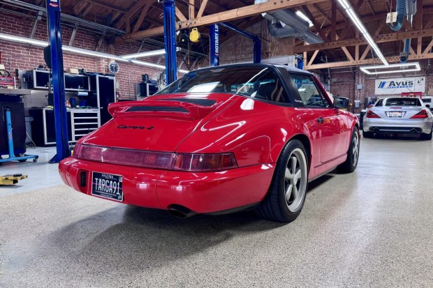 This 1991 Porsche 911 Carrera 2 Targa was purchased by the current owner in 2026, and it has been fitted with 17″ Maxilite Fuchs-style wheels, RS-specification sway bars, a MOMO steering wheel, a Monty exhaust system, and a Porsche Classic Communication Management (PCCM) system. Powered by a 3.6-liter flat-six paired with a five-speed manual transaxle, the car is finished in Guards Red over a black leather interior, which houses power-adjustable front sport seats. Equipment includes a removable Targa roof panel, cruise control, and air conditioning. This 964 C2 Targa is offered in California by the seller on behalf of the current …