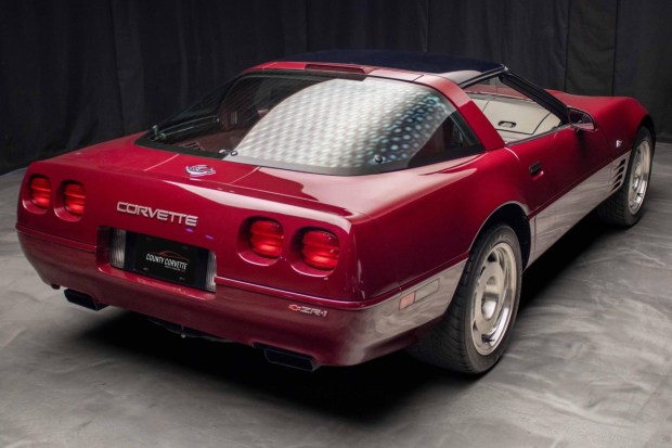 This 1993 Chevrolet Corvette is one of 448 ZR-1 examples produced for the model year, and of those, is one of 225 equipped with the 40th Anniversary Appearance Package. Indicating 13k miles, the car remained with its original owner for a total of 32 years, and 40th Anniversary-specific equipment includes Ruby Red leather upholstery to match the paintwork, power-adjustable sport seats with special headrest embroidery, and Ruby center accents for the 17″ sawblade alloy wheels. Further details include a 5.7-liter LT5 V8, a ZF six-speed manual transmission, the Selective Ride and Handling Package, two removable roof panels, and automatic climate co …