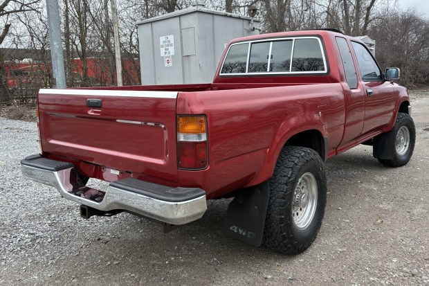 This 1993 Toyota Pickup is an SR5 XtraCab 4×4 example that was sold new in the US and spent time in California, Nevada, and Virginia before it was purchased by the seller and imported to Canada in 2026. Finished in Garnet Pearl over gray cloth, the truck is powered by a 3.0-liter 3VZ-E V6 linked to a five-speed manual transmission and a dual-range transfer case. Equipment includes a pop-up sunroof, 15″ 12-hole alloy wheels, cruise control, power windows, and a Kenwood stereo. This Toyota pickup shows 166k miles and is offered at no reserve in Canada with serv …
