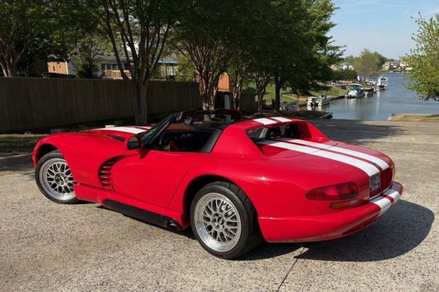 This 1994 Dodge Viper RT/10 is said to have been modified by Hennessey Motorsports with the company’s Venom 550 package, which upgraded the 8.0-liter V10 with a revised camshaft, cylinder heads, and exhaust components. It was acquired by the seller in 2015 and now shows 35k miles. The car is finished in Viper Red over a red and black interior, and equipment includes a limited-slip differential, a removable soft top, a removable rear window, BBS 18″ wheels, zip-up vinyl windows, a tonneau cover, a Kenwood CD stereo, and air conditioning. This Viper is now offered with the owner …