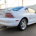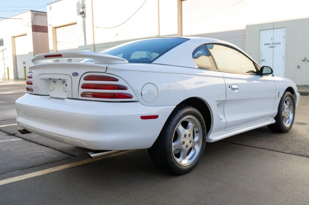 This 1994 Ford Mustang SVT Cobra coupe shows 2,800 miles, and it is powered by a 302ci V8 linked with a five-speed manual transmission and a limited-slip differential. The car has spent time with two registered owners since new, and it is equipped with Crystal White paint, a rear spoiler, and 17″ cast-aluminum wheels, while further details include a Mach 460 sound system, air conditioning, and black leather-trimmed articulated front seats. This Mustang SVT Cobra coupe is now offered by the selling dealer with an SVT Certificate of Authenticity, the owner’s manual, a damage-free Carfax report, and a clean Michigan title.