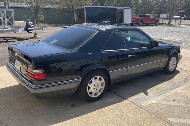 This 1994 Mercedes-Benz E320 coupe was optioned with the Sportine Package and was purchased in 2015 by the seller, who has since added ~30k of its 110k miles shown. Powered by a 3.2-liter inline-six paired with a four-speed automatic transmission, it is finished in black over black leather upholstery. Equipment includes a sliding steel sunroof, 15″ Alamak alloy wheels, a Sportline suspension, power-adjustable front seats, a sport steering wheel, power windows, automatic climate control, and a cassette stereo. This E320 is offered at no reserve with a clean Carfax report and a clean Florida title in the seller’s name.