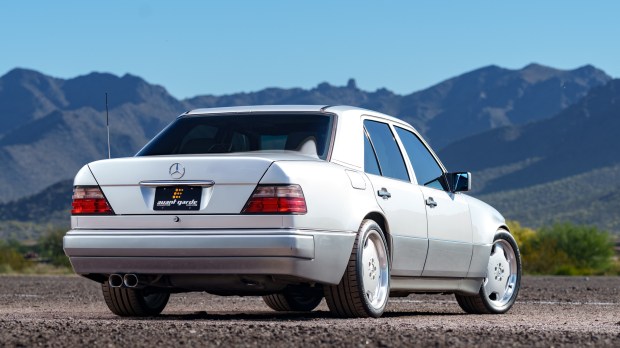 This 1994 Mercedes-Benz E500 is powered by a 5.0-liter M119 V8 paired with a four-speed automatic transmission and has been modified with a RENNtech carbon-fiber airbox, a RENNtech EPROM chip, and a RENNtech stainless muffler. It is finished in Brilliant Silver Metallic over black leather, and equipment includes a sunroof, headlight wipers, and 18” AMG Monoblock wheels along with heated power-adjustable front seats, a leather-wrapped airbag steering wheel, automatic climate control, cruise control, and a cassette stereo. The car was acquired by the current owner in 2011 and shows 107k miles. This E500 is now offered by the consigning dealer—a BaT Lo …