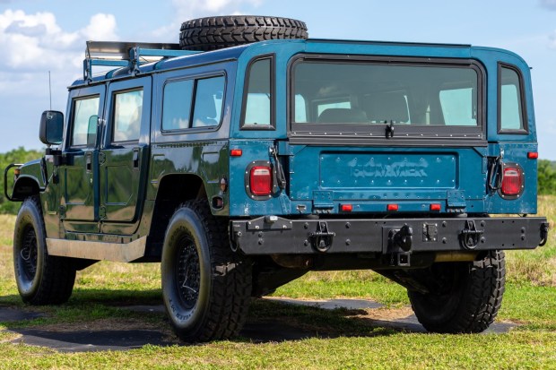 This 1995 AM General Hummer is a four-door wagon that spent its first 12 years registered in New Jersey before it resided in three different provinces in Canada for the next 18 years. It then reentered the US in 2025, when the selling dealer acquired it. The truck is powered by a 6.5-liter diesel V8 linked to a four-speed automatic transmission, a dual-range transfer case, and torque-biasing front and rear differentials. The blue-finished bodywork has a front brush guard, a Badland 12k-lb front winch, a rear pintle hitch, a receiver hitch, an LED light bar, aftermarket auxiliary lighting, and …