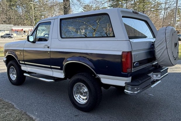 This 1996 Ford Bronco XLT was purchased by the seller from the reported second owner in 2025 and now has 66k miles. It has been refinished in white and blue over Opal Gray cloth and is powered by a 5.0-liter V8 linked with a four-speed automatic transmission and a dual-range transfer case. Equipment includes 15″ forged aluminum wheels, a Pioneer Bluetooth stereo, Kicker speakers, cruise control, air conditioning, and power windows. This Bronco XLT is offered with manufacturer’s literature, service records, a clean Carfax report, and a clean Massachusetts title in the seller’s name.
