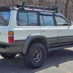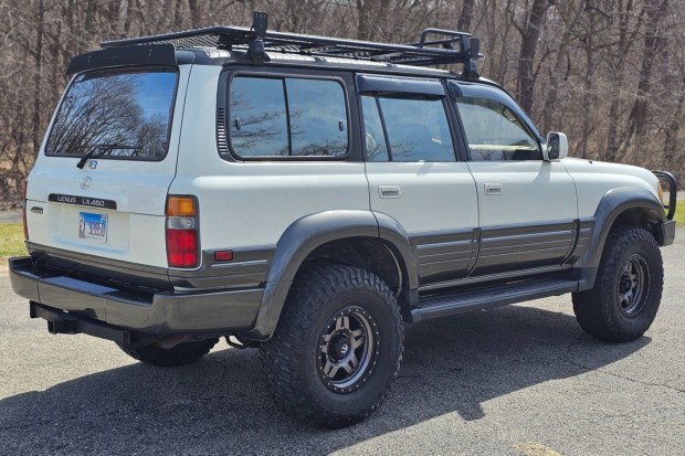 This 1996 Lexus LX450 rides on an Old Man Emu suspension lift kit along with 17″ Fuel alloy wheels wrapped in 35″ BFGoodrich tires. The body is finished in white and has been fitted with an ARB roof rack and front bumper in addition to a Smittybilt winch, IPF off-road lights, and window rain guards. Power comes from a 4.5-liter inline-six linked to a four-speed automatic transmission, a dual-range transfer case, and a locking center differential, and the truck is further equipped with running boards, a receiver hitch, power-adjustable front seats, third-row sea …