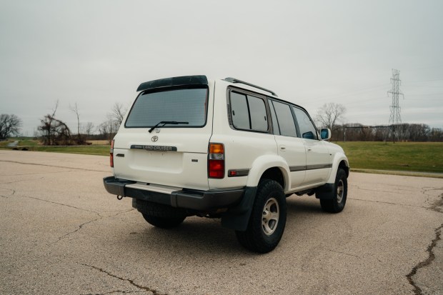 This 1997 Toyota Land Cruiser is a Collector’s Edition example that has spent the majority of its time registered in Arizona, and it was previously sold on BaT in February 2022. It was acquired by the selling dealer in 2026, and it shows 217k miles. The truck is finished in White over Oak leather and is powered by a 4.5L 1FZ-FE inline-six linked with a four-speed automatic transmission, a dual-range transfer case, and triple locking differentials. Equipment includes an Icon Vehicle Dynamics suspension lift kit, 16″ alloy wheels, a sunroof, a roof rack, power-adjustable front seats, folding third-row seats, a Kenwood head unit, and automatic climate control. This FZJ80 is now offered by the selling dealer with the owner’s manual, service records, and a clean Wisconsin title.