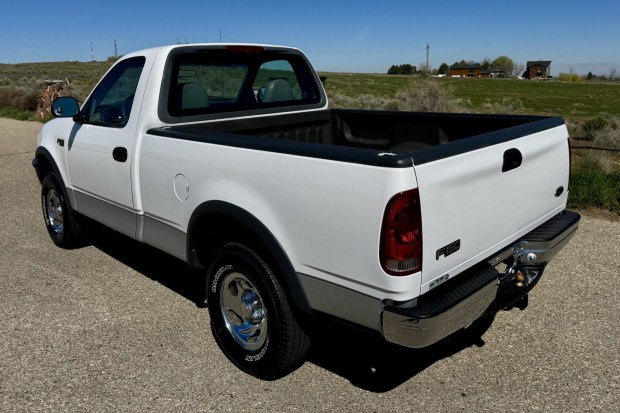 This 1998 Ford F-150 XL is a regular cab 4×4 pickup that was initially delivered to Bob Rice Ford of Boise, Idaho, and remained registered with the original owner until 2026. The truck now shows 60k miles and is powered by a 4.2-liter V6 that drives the rear or all four wheels through a five-speed manual transmission. It is finished in Oxford White Clearcoat over Medium Graphite cloth and features a 6.5′ short bed, a Rhino Linings bed liner, a receiver hitch, cruise control, air conditioning, bench seating, an AM/FM stereo, and a locking tailgate. Thi …