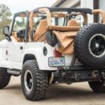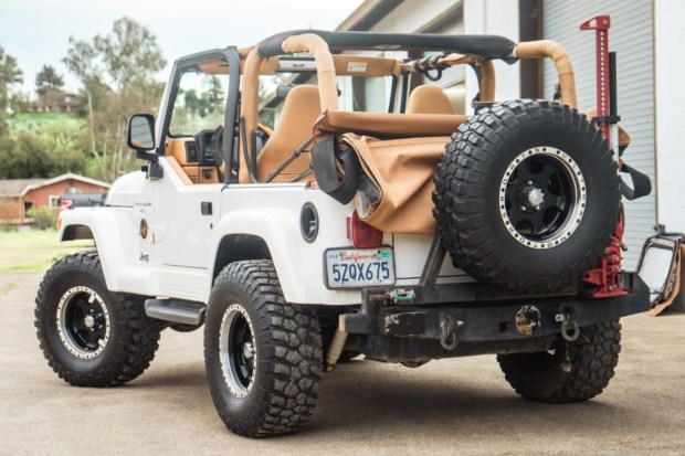 This 1998 Jeep Wrangler Sahara was initially registered in California, where it has remained through the seller’s September 2012 purchase. Power is provided by a 4.0-liter inline-six linked with a five-speed manual transmission, a Command-Trac dual-range transfer case, and a Trac-Lok limited-slip rear differential. The truck is finished in Stone White over Saddle and Moss Green cloth and features a Dark Tan soft top, fog lights, metal half doors, 15″ Ultra Motorsport wheels, suspension lift kit, power steering, high-back front bucket seats, air conditioning, an Alpine head unit, JBL speakers, and a roll bar. This TJ W …