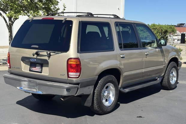 This 1999 Ford Explorer XLT is a four-door example that has been registered in California since new and is powered by a 5.0-liter V8 linked with a four-speed automatic transmission and an all-wheel-drive system. The truck shows 107k miles and is finished in Harvest Gold Clearcoat Metallic over Medium Prairie Tan leather. Equipment includes a sunroof, running boards, roof rails, 15″ five-hole alloy wheels, power-adjustable front seats, a CD stereo, a six-disc CD changer, cruise control, and air conditioning. This Explorer is now offered by the selling dealer at no reserve with the owner’s manuals and a clean Calif …