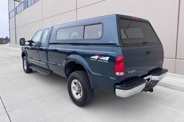 This 1999 Ford F-250 Super Duty Lariat is a SuperCab long-bed 4×4 pickup that remained registered to the previous owner in Montana for 26 years and now shows 133k miles. It is finished in Dark Tourmaline Metallic over Prairie Tan leather and powered by a 6.8-liter Triton V10 linked with a four-speed automatic transmission, a shift-on-the-fly dual-range transfer case, and a limited-slip rear differential. Equipment includes the Off-Road Package, a body-color Century bed topper, 16″ six-spoke alloy wheels, four-wheel disc brakes, air conditioning, cruise control, a power-adjustable driver’s seat, and a CD/cassette ster …