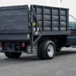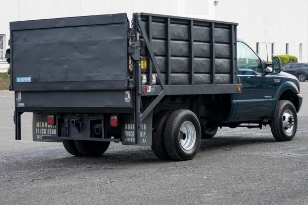 This 1999 Ford F-350 Super Duty XL is a 4×4 dually with a stake bed and a tail lift, and it is powered by a 7.3-liter Power Stroke turbodiesel V8 paired with a four-speed automatic. Finished in Dark Hunter Green over Medium Graphite vinyl, it has a limited-slip rear differential, strobe lighting, telescoping mirrors, 16″ steel wheels, disc brakes, manual windows, an AM/FM radio, a trailer brake controller, and air conditioning. This F-350 shows 103k miles and is offered by the selling dealer at no reserve with a clean Pennsylvania title.