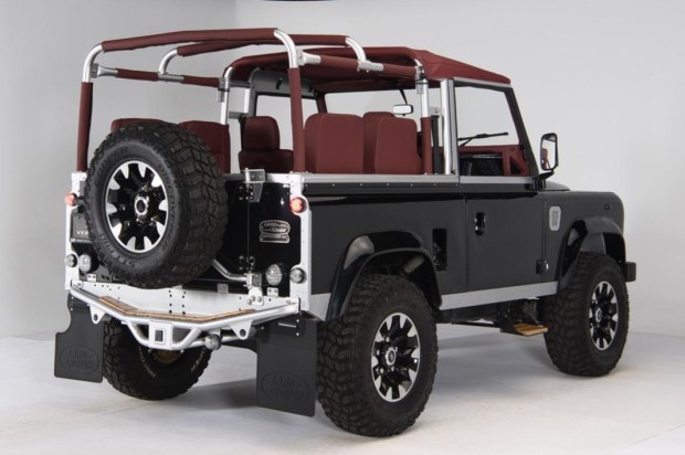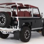 This 1998 Land Rover Defender 90 was acquired by the selling dealer in Morocco, where it underwent a conversion from a hardtop station wagon to a soft top configuration. It wears a repaint in metallic black with silver accents over a bordeaux red interior and matching vinyl soft tops. Additional details include 16″ Sawtooth wheels, Nimbus Oleo-Pneumatic shocks, half doors, wood decking, LED headlights, a receiver hitch, air conditioning, a wood-rimmed steering wheel, and four inward-facing rear seats. The truck is powered by a turbodiesel 2.5-liter 300Tdi inline-four linked with a five-speed manual transmission, a dual- …