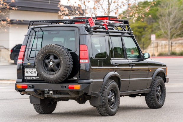 This 1999 Land Rover Discovery II SE7 spent the majority of its life registered in California before the seller’s acquisition in 2018 and was relocated to Texas in 2021. Maintenance under prior ownership in 2015 included a cylinder head rebuild and a valve job. The truck was fitted under prior ownership with a 2″ Old Man Emu suspension lift kit, while additional modifications include steel front and rear bumpers, Ironman all-terrain tires, a rearview camera, an aftermarket head unit with a flip-out touchscreen, receiver hitch, and an expedition-style roof rack carrying jerry cans, auxiliary lighting, and recovery tools consisting of a high-lift jack, axe, and sho …