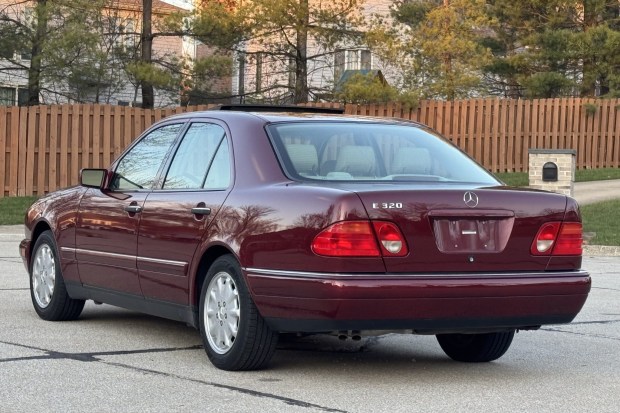 This 1999 Mercedes-Benz E320 sedan is finished in Bordeaux Red Metallic over Parchment leather and has 36k miles. It is powered by a 3.2-liter V6 paired with a five-speed automatic transmission and features include a sunroof, 16″ 10-hole alloy wheels, heated power-adjustable front seats, a CD stereo, a Bose premium sound system, cruise control, and dual-zone automatic climate control. Acquired by the selling dealer in 2026, this W210 E320 sedan is now offered at no reserve with two keys, a clean Carfax report, and a clean Ohio title.
