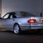 This 1999 Mercedes-Benz E55 AMG remained under long-term ownership in Georgia from 2005 until it was sold on BaT in August 2021, and it was acquired by the current owner the following year. Finished in Brilliant Silver Metallic over blue and black leather upholstery, the car is powered by a 5.4-liter V8 paired with a five-speed automatic transmission. It has been retrofitted with Eibach lowering springs, and additional equipment includes an AMG exhaust system, 18″ AMG Monoblock wheels, fog lights, xenon headlights, rain-sensing wipers, a sunroof, a rear window sunshade, heated and power-adjustable front seats, and dual-zone automatic climate control. A remanufactured water pump was i …