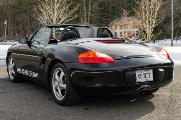 This 1999 Porsche Boxster is a triple-black example that was registered in California, New York, and Arizona before it was sold on BaT in May 2023, and it was acquired by the current owner later that month. Powered by a 2.5-liter flat-six paired with a five-speed manual transaxle, the car has 17” Carrera-look twist-spoke wheels, a convertible soft top, Porsche side graphics, a deployable rear spoiler, heated seats, cruise control, a Kenwood CD stereo, a Hi-Fi sound system, automatic climate control, and wood trim on the steering wheel and dashboard. This 986 Boxster has 51k miles and is now offered by the seller on behalf of the owner with partial service record …