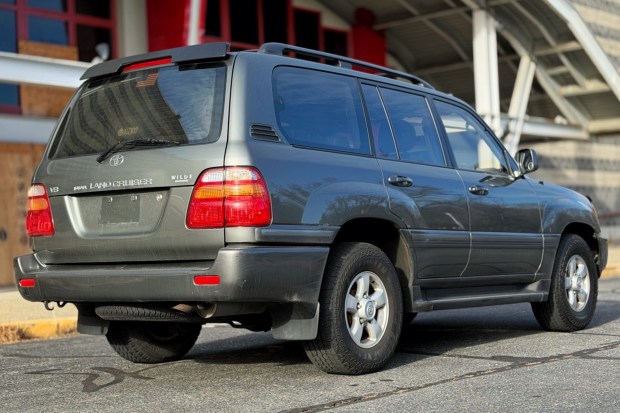This 1999 Toyota Land Cruiser has 69k miles following registration history in Wisconsin since new. Finished in Riverock Green Mica over gray leather, it is powered by a 4.7-liter 2UZ-FE V8 linked with a four-speed automatic transmission, a dual-range transfer case, and locking center and rear differentials. Features include 16″ alloy wheels, a hood deflector, fog lights, a power sunroof, heated front seats, third-row seating, a JBL CD/cassette stereo, cruise control, and automatic climate control. Acquired by the selling dealer in 2026, this Land Cruiser UZJ100 is now offered in Massachusetts with the owner’s manual, a clean Carfa …