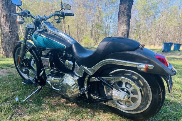 This 2000 Harley-Davidson Softail Deuce is said to have remained with its first owner from new until its 2025 acquisition by the seller, who tells us that the bodywork subsequently received a custom paint scheme involving a silver metalflake base coat, a black candy top coat, and airbrushed graphics on the fuel tank. Powered by an air-cooled 88ci Twin Cam V-twin paired with a five-speed transmission, the motorcycle is also equipped with a drive belt, an electric starter, a Mikuni carburetor, a chrome-finished dual exhaust system, a Progressive Suspension lowering kit, a 21″ five-spoke front w …