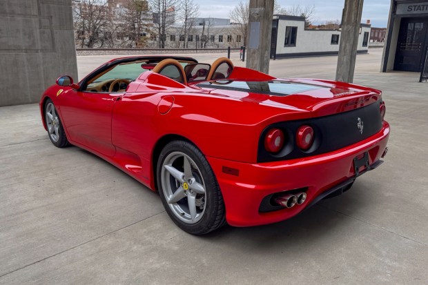 This 2001 Ferrari 360 Spider was delivered new to Foreign Cars Italia of Greensboro, North Carolina, and was later sold on BaT in March 2023, before being acquired by its current owner in 2025. Finished in Rosso Corsa over beige leather, the car is powered by a 3.6-liter V8 paired with a six-speed F1 sequential transaxle. It rides on 18″ alloy wheels and is further equipped with a limited-slip differential, a tan convertible soft top, Scuderia Ferrari fender shields, power-adjustable Daytona-style seats, a CD stereo, and automatic climate control. Now with 15k miles, this 360 Spider is offered on dealer consignment in Kansas with a clean Carfax report and an Ill …