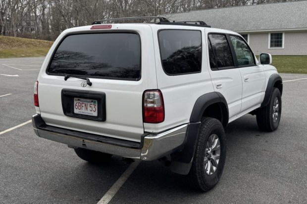 This 2001 Toyota 4Runner SR5 left the factory as a rear-wheel-drive example, and it was fitted with a replacement 3.4-liter 5VZ-FE V6, a four-speed automatic transmission, a dual-range transfer case, and various ancillary components sourced from a four-wheel-drive-equipped 2000 4Runner under current ownership. The truck was repainted in white under previous ownership, and its beige seats and interior components were also sourced from the 2000 4Runner donor vehicle. Additional features include a roof rack, a power rear window, manually locking front hubs, anti-lock disc brakes, a lifted suspension with Bilstein dampers, and Tacoma-sourced 16″ wheels a …