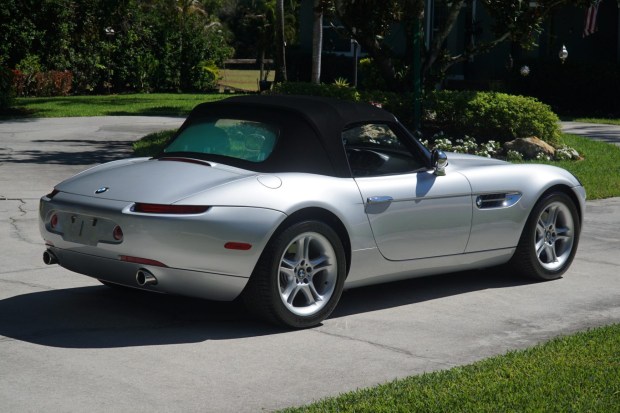 This 2002 BMW Z8 remained registered with its original owner until it was sold on BaT in December 2023, and it was acquired by the selling dealer in 2026. Powered by a 4.9-liter V8 paired with a six-speed manual transmission, the car is finished in Titanium Silver Metallic over black Nappa leather. Features comprise a matching hardtop, a black soft top, 18″ split-spoke wheels, xenon headlights, heated power-adjustable sport seats, a Harman Kardon sound system, and navigation. This Z8 has 13k miles and is now offered in Florida by the selling dealer with a hardtop stand, service records, accessories, a clean Carfax …