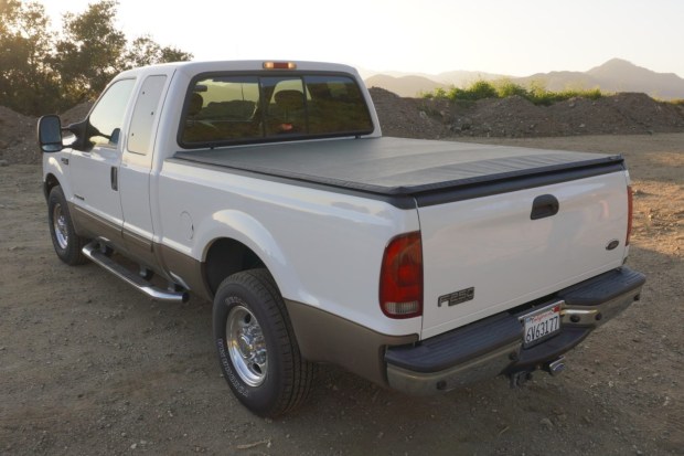 This 2002 Ford F-250 Super Duty Lariat is a SuperCab short-bed pickup that has remained registered in California since new and has 65k miles after it was purchased by the seller from the original owner in 2024. Finished in Oxford White and Arizona Beige Metallic over Medium Parchment leather, the truck is powered by a 7.3-liter Power Stroke turbodiesel V8 that drives the rear wheels through a four-speed automatic transmission and a limited-slip differential. Equipment includes an Airaid cold air intake, a soft tonneau cover, 16″ five-hole alloy wheels, heated front seats, power-adjusta …