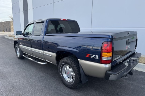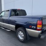 This 2002 GMC Sierra 1500 SLE 4×4 pickup has 79k miles and is finished in Indigo Blue and Pewter Metallic over Graphite cloth. Power is from a 5.3-liter Vortec V8 linked to a four-speed automatic transmission, an Autotrac active dual-range transfer case, and a locking rear differential. Equipment includes the Z71 Off-Road Suspension Package, a LEER fiberglass tonneau cover, 16″ polished aluminum wheels, power-adjustable front seats, air conditioning, cruise control, and a Sony touchscreen head unit. Purchased by the seller in 2026, this GMT800 Sierra 1500 is offered with a window sticker, manufacturer’s literature, a Carfa …