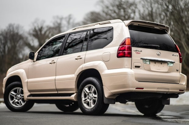 This 2003 Lexus GX470 is finished in Sand Dollar Pearl over Ivory leather and is powered by a 4.7-liter 2UZ-FE V8 that drives all four wheels through a five-speed automatic transmission, a dual-range transfer case, and a Torsen locking center differential. Equipment includes 17″ alloy wheels, fog lights, a power sunroof, heated power-adjustable side mirrors, illuminated running boards, heated power-adjustable front seats, wood interior trim, third-row seating, dual-zone automatic climate control, cruise control, rear-cabin air conditioning, and a cassette stereo with an in-dash six-disc CD stereo. Acquired by the selling dealer in 2026, this J120 GX470 …