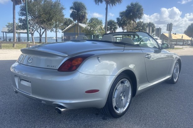 This 2003 Lexus SC430 remained under the care of its original owner in Connecticut and Florida until 2025, and it is powered by a 4.3-liter V8 linked to a five-speed automatic transmission. Finished in Millennium Silver Metallic over beige leather, the car is equipped with a power-retractable hardtop, HID headlights, fog lights, 18″ dish-style five-spoke alloy wheels, heated power-adjustable front seats, navigation, cruise control, dual-zone automatic climate control, a Mark Levinson sound system, and an AM/FM/cassette stereo with an in-dash CD changer. Acquired by the selling dealer in 2026, this SC430 is offered with the owner’s manual, a clean Carfax report, …