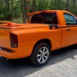 This 2004 Dodge Ram 1500 SLT is a regular cab pickup that is #20 of a reported 433 Hemi GTX examples modified by LA West Luxury Vehicles in LaGrange, Indiana, for the model year. The conversion added a Hemi Orange finish, a cowl hood, and a body-color tonneau cover with a rear spoiler as well as black Hemi GTX graphics, chrome 20″ Prime wheels, orange interior accents, and a cat-back exhaust system. Powered by a 5.7-liter Hemi V8 that drives the rear wheels through a five-speed automatic transmission, the truck is further equipped with four-whee …