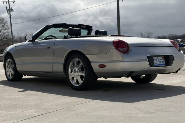 This 2004 Ford Thunderbird has 122k miles and was acquired by the current owner in 2025. Finished in Platinum Silver Metallic over black leather, it is powered by a 3.9-liter V8 paired with a five-speed automatic transmission. Equipment includes a Midnight Black soft top, 17″ Premium wheels, power-adjustable seats, the Black Interior Accent Package, an in-dash six-CD changer, and dual-zone automatic climate control. This Thunderbird is now offered by the seller on behalf of the current owner at no reserve with a clean Michigan title in the owner’s name.