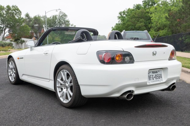 This 2004 Honda S2000 was initially delivered to Country Motors Honda in Butler, Pennsylvania, and was purchased in 2022 by the seller from its original owner and now has 23k miles. Finished in Grand Prix White over tan leather upholstery, the car is powered by a 2.2-liter VTEC inline-four linked to a six-speed manual transmission and a limited-slip differential. Features include a black convertible soft top, xenon headlights, 17″ 10-spoke wheels, air conditioning, a stereo, and cruise control. This AP2 S2000 is offered with a window sticker, the owner’s manual, a car cover, a clean Carfax report, and a clean Texas title in the seller’s name.