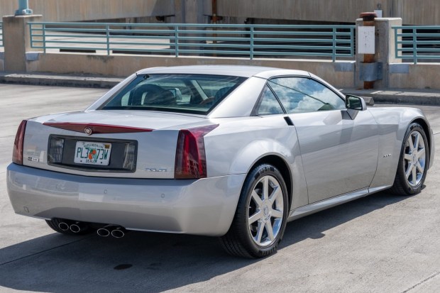 This 2005 Cadillac XLR has 18k miles, and it has been registered in California and Florida from new. The car is finished in Light Platinum over Shale leather and is powered by a 4.6-liter Northstar V8 paired with a five-speed automatic transmission. Equipment includes a power-retractable hardtop, xenon headlights, rear parking sensors, 18″ seven-spoke alloy wheels, Magnetic Ride Control, Driver Shift Control, heated and cooled seats, a head-up display, a Bose sound system, adaptive cruise control, and navigation. This XLR was listed on BaT in March 2026 and is now offered by the selling dealer at no reserve with a clean Carfax report and a clean Florida title.