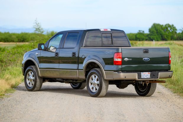 This 2005 Ford F-150 King Ranch SuperCrew 4×4 is said to have remained registered with one family in California through 2026 and now has 96k miles. Finished in Aspen Green and Arizona Beige Metallic over Castaño leather, the truck is powered by a 5.4-liter Triton V8 linked with a four-speed automatic transmission, a dual-range transfer case, and a limited-slip rear differential. Equipment includes a power sunroof, a Rough Country leveling kit, 18″ seven-spoke aluminum wheels, heated power-adjustable front seats, power-adjustable pedals, automatic climate control, cruise control, and a …