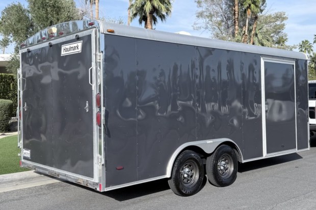 This 2006 Haulmark Transport Auto is an 18′ enclosed vehicle trailer that was purchased new by the seller. The aluminum body has been repainted, and equipment includes a power-operated ramp, a side-entry door, 15″ wheels, a roof vent, and a roof-mounted solar panel. A rubber covering lines the interior floor, and the cargo area also has floor-mounted E-track rails, floor-mounted anchor rings, wall-mounted ratchet straps, shelving, interior electrical outlets, a bike rack, and a winch. This Haulmark trailer is now offered at no reserve with a clean California title in the name of the seller’s company.