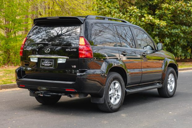 This 2006 Lexus GX470 has been registered in Texas since new and now has 104k miles. Finished in Black Onyx over gray leather, it is powered by a 4.7-liter V8 that drives all four wheels through a five-speed automatic transmission, a dual-range transfer case, and a Torsen locking center differential. Equipment includes 17″ alloy wheels, an Adaptive Variable Suspension, fog lights, a power sunroof, a roof rack, heated power-adjustable side mirrors, illuminated running boards, a receiver hitch, heated power-adjustable front seats, wood interior trim, third-row seating, dual-zone automatic climate con …