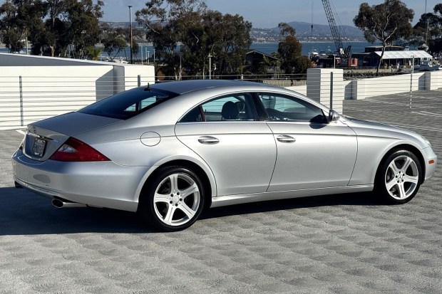 This 2006 Mercedes-Benz CLS500 has 62k miles following registration history in California since new. Finished in Iridium Silver Metallic over gray leather, it is powered by a 5.0-liter V8 paired with a seven-speed automatic transmission. Equipment includes 18″ alloy wheels, an Airmatic Dual Control air suspension, heated and ventilated front seats, four-zone climate control, cruise control, a CD changer, COMAND with navigation, and a Harman Kardon surround sound system. Acquired by the selling dealer in 2025, this C219 CLS500 is now offered at no reserve with manufacturer’s literature, a clean Carfax report, and a clean California title …